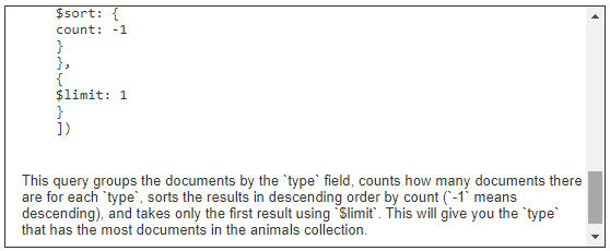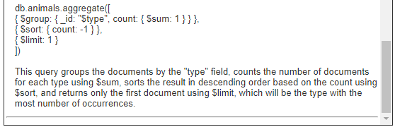 You can also ask the query assistant to explain existing queries. For example, consider the query to retrieve data from the standard MongoDB mFlix sample data shown below.